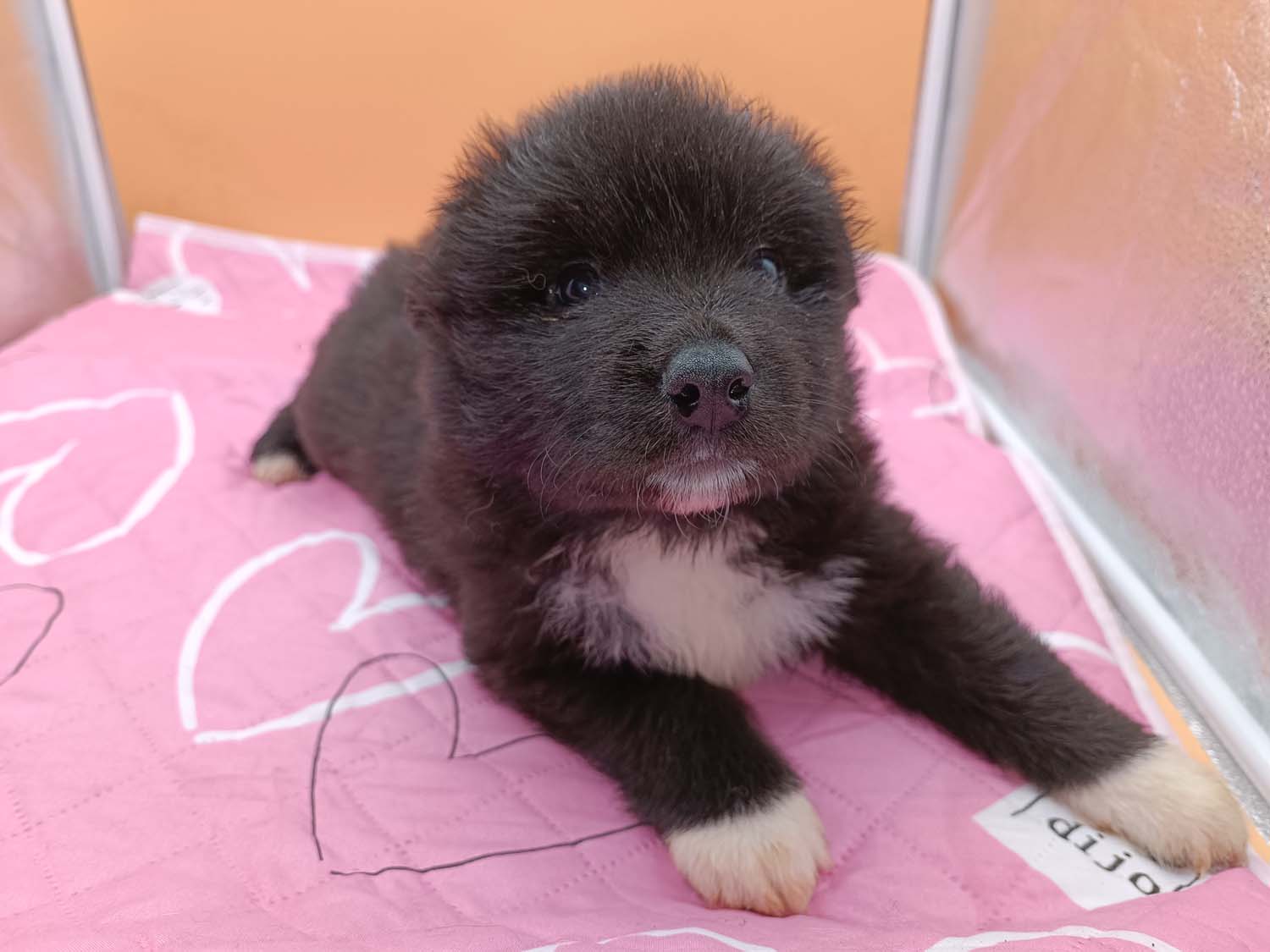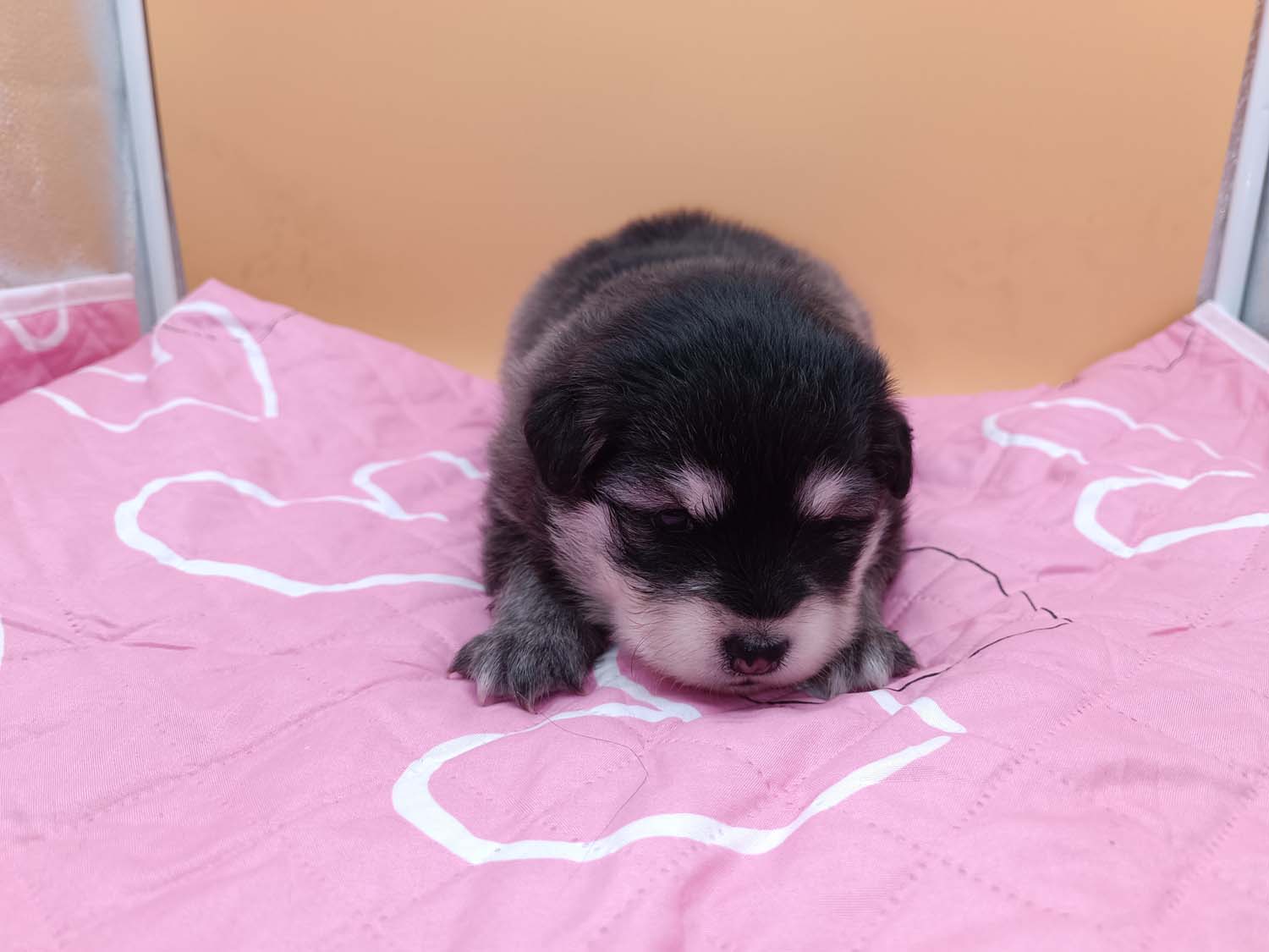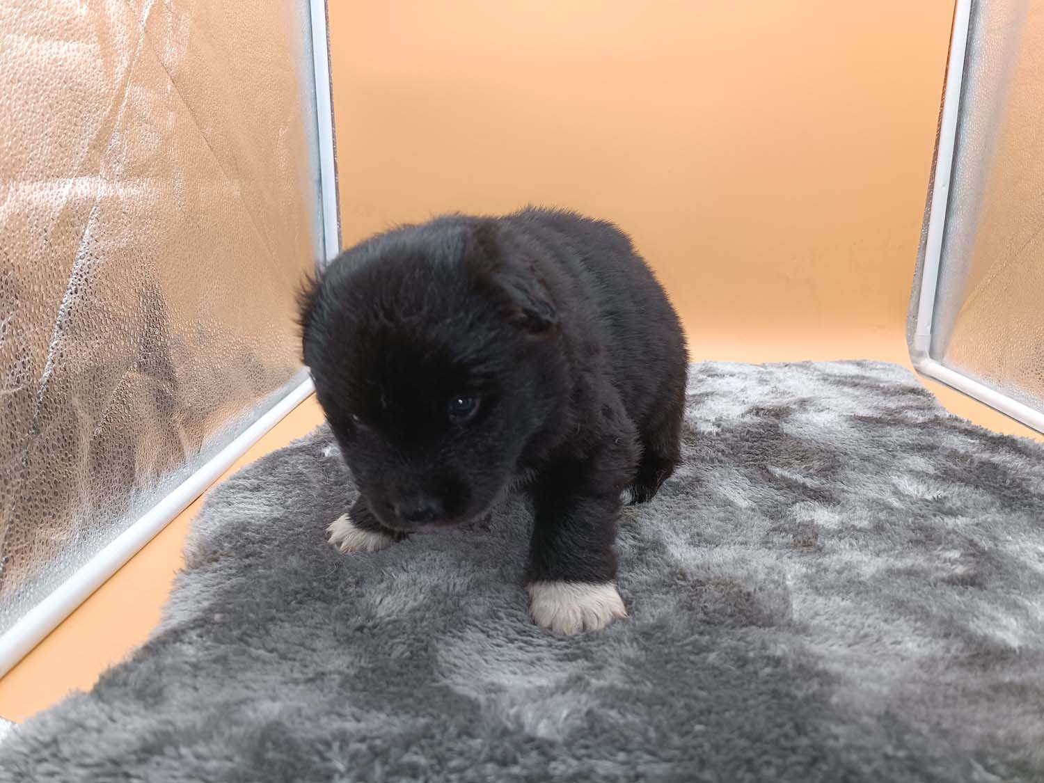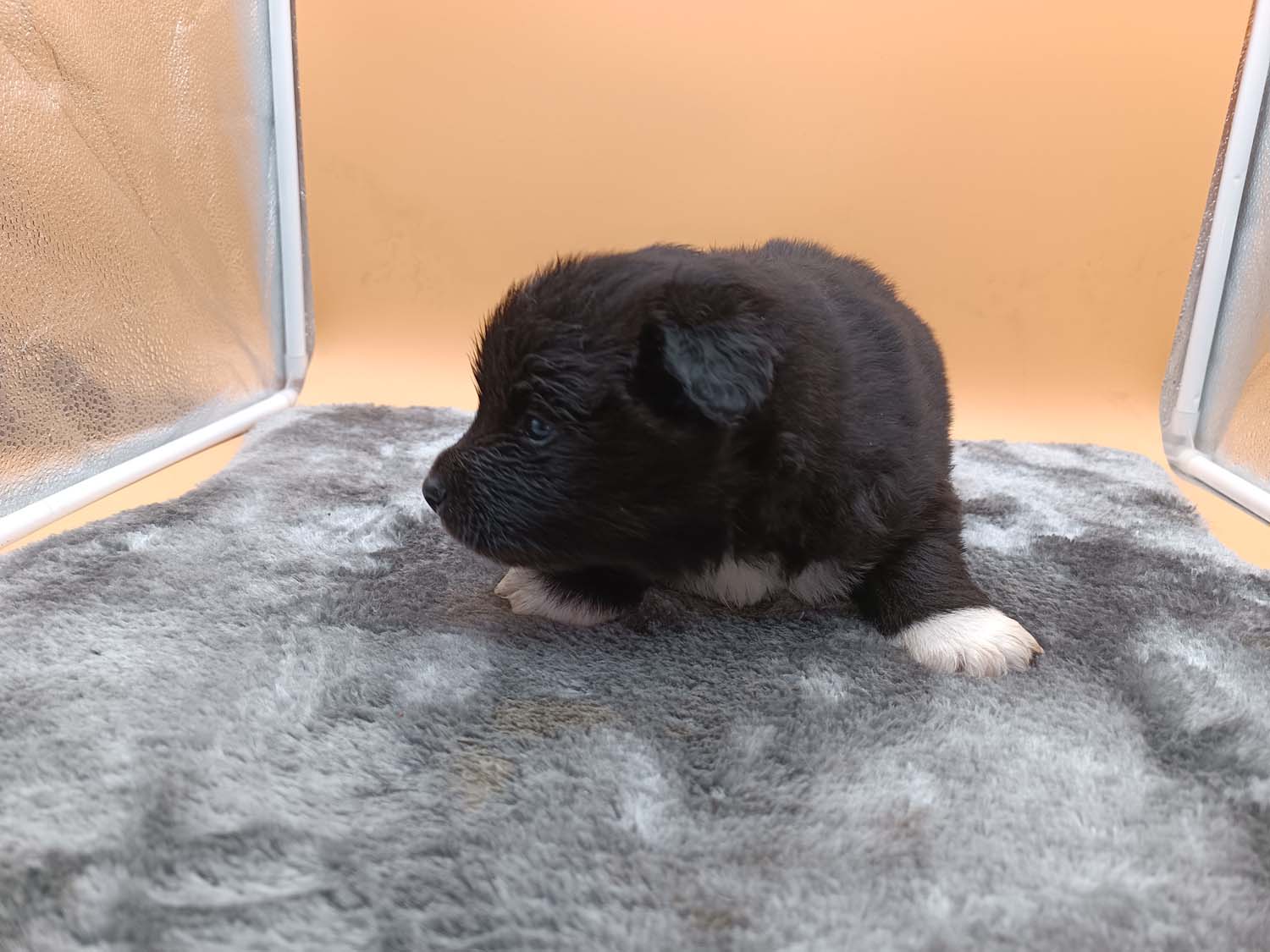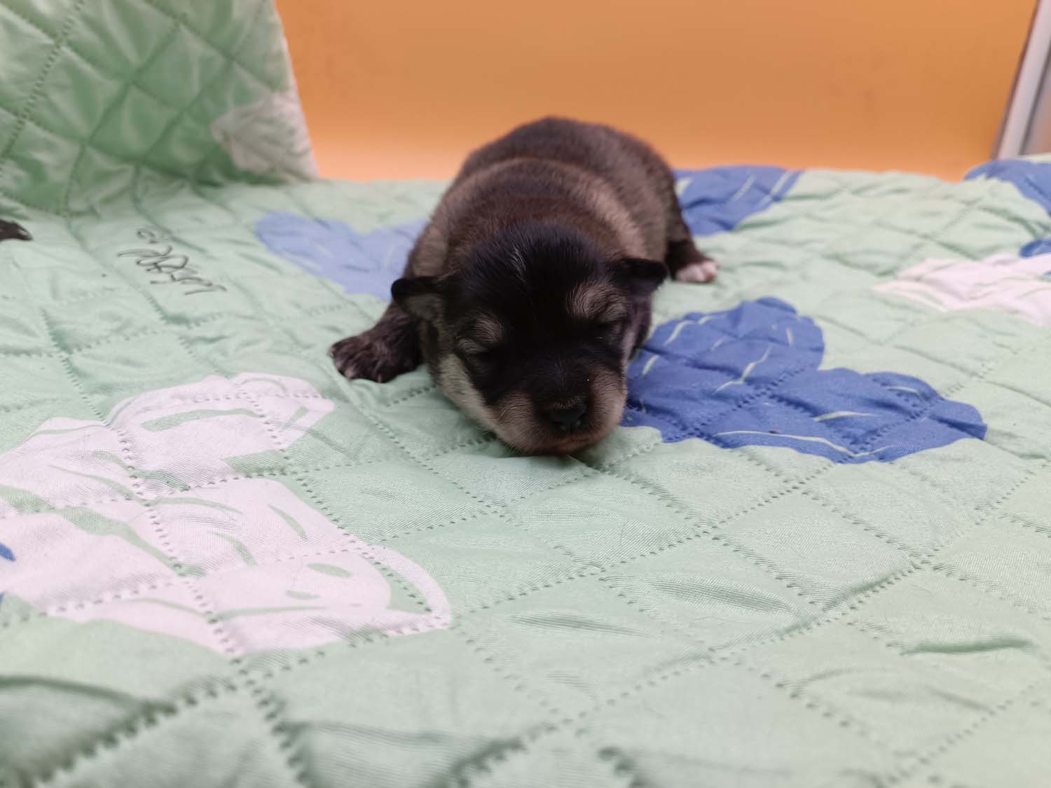 Bei der 3. Hündin bin ich mir noch nicht sicher welche Farbe sie mal haben wird. Ich denke schwarz, die Besitzerin vom Deckrüden meint sie erkenne ganz dezente Tan-Abzeichen. Ich sehe sie nicht wirklich, ich könnte theoretisch einen Gen-Test machen, dauert etwa 4-5 Wochen, bis dahin vermute ich aber dass wenn es wirklich tan abzeichen sind, sie deutlicher werden. Diese Abzeichen bilden sich auch erst innerhalb des ersten Lebensjahres richtig aus.