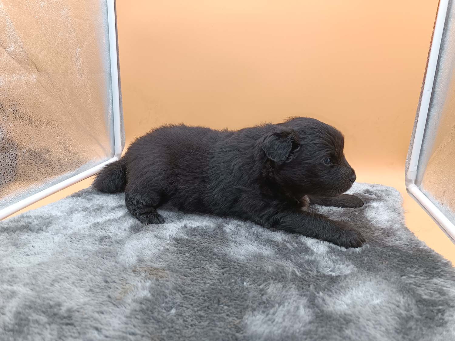 Die Welpen sind leider überhaupt nicht kooperativ wenn es um das Fotografieren geht. Von 50 Fotos ist 1 teilweise akzeptabel. Interessant finde ich dass man jetzt schon kleine Unterschiede merkt. Der kleine schwarze Rüde war beim fotografieren absolut gelassen, wären die erste Hündin lautstark ihren Unmut von sich gab.
