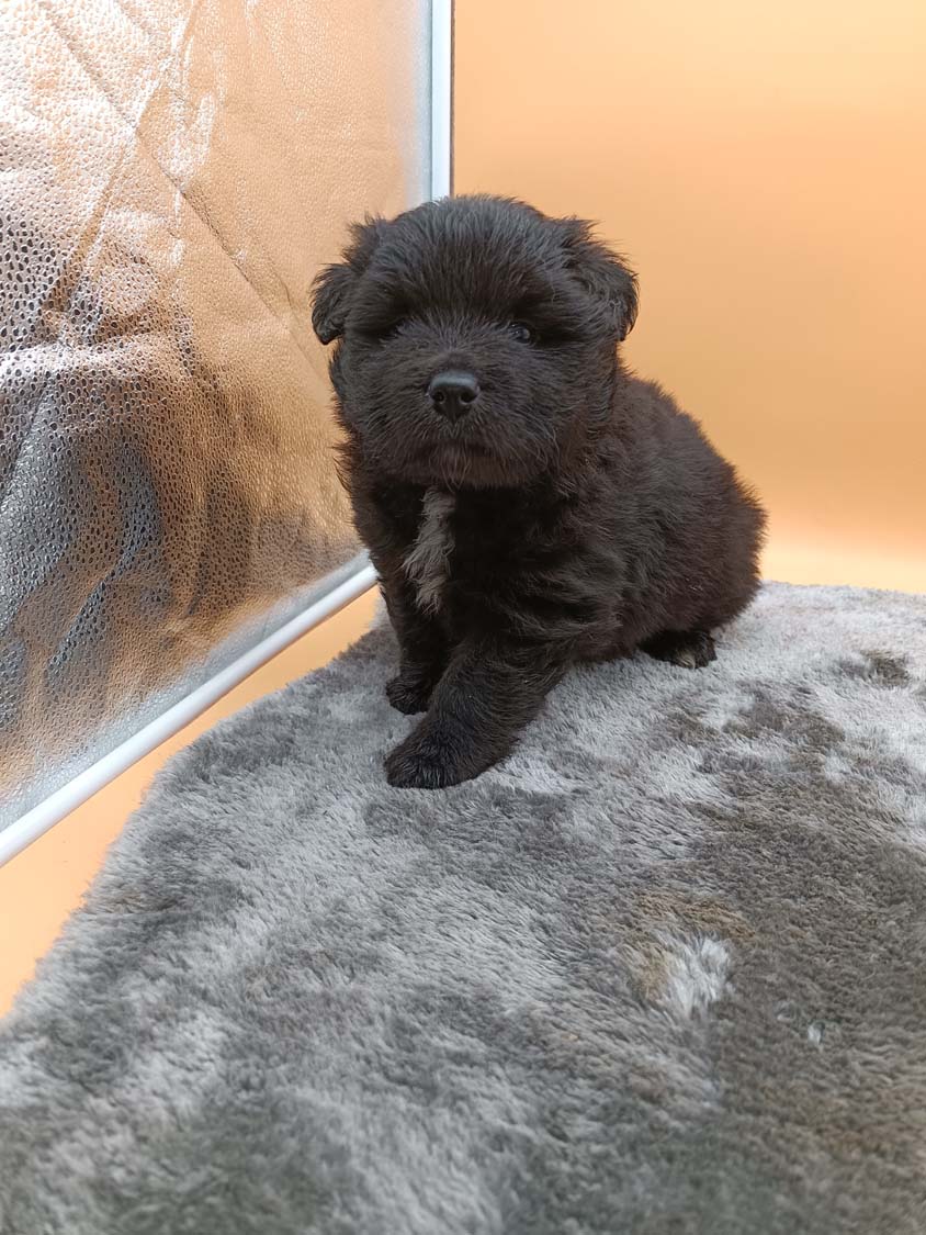 Pläne sind da um geändert zu werden. Da Hexe viel zu zeitig läufig geworden ist und ich keine Chance gehabt hätte mit den Welpen vom letzten Wurf noch hier in die Schweiz zu fahren, habe ich es riskiert mit Kiwi zum decken zu fahren. Vater des Wurfes wird der wunderbare Corry. Corry ist ein Rüde in der sehr seltenen Farbe rezessiv schwarz, auch Kiwis creme wird rezessiv vererbt, da die Besitzer von Corry eine große Genanalyse haben machen lassen, weiß ich dass er neben diesen schwarz auch braun und creme vererben kann. Und da auch Kiwis Gene bekannt sind, ergibt sich bei diesem Wurf die Möglichkeit auf 5 verschiedene Farben: creme, braun&tan, solid braun, black&tan sowie wie Papa Corry solid schwarz. Bei den beiden solid Varianten gibt es die Möglichkeit für die bei Lapphunden besondere Brillenzeichnung. Sprich die helle Ringe um die Augen.