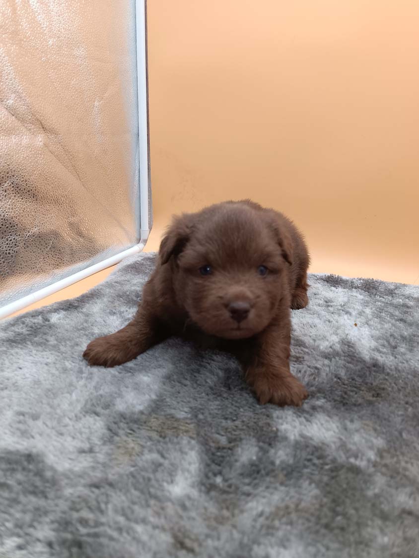 Hier ist mal ein Foto dass mir die Mitbesitzer vom Deckrüden gegeben haben, wie man sieht, hat sich der Welpe "leicht" verändert, es ist manchmal schwer in den ersten Wochen die Farbe wirklich zu bestimmen.