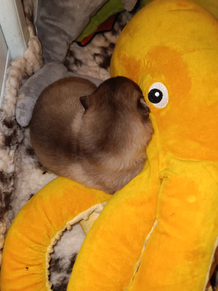 Das Video ist von heute (05.03) ein kleines bisschen verändert, Hubble und Helike, haben aber entschieden lieber ein Nickerchen zu machen als zu erkunden. Helix ist der neugierigste im Wurf, er war der erste der sich durch den kleinen Tunnel getraut hat.