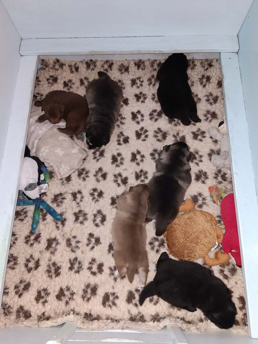 Die Welpen wachsen und Gedeihen und die ersten haben bereits die 500g Marke geknackt.