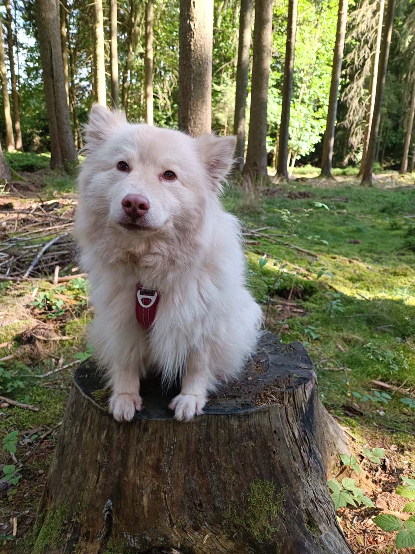 Kiwi... Kiwi ist ein kleines Energiebündel. Die Überlegung Kiwi zu behalten war sehr spontan. Eigentlich spielte ich mit den Gedanken einen Rüden zu behalten, der bei meinen Bruder leben sollte. Nunja leider war kein Rüde in dem Wurf, jedoch schlich sich die kleine cremefarbene Maus schnell in mein Herz. Nach Rücksprache mit meiner Familie kamen wir zum Entschluss Kiwi zu behalten. Kiwi ist eine absolute Kuschelmaus, die ständig die Nähe zu einem sucht und gekrault werden möchte. Die Abende verbringt sie am liebsten mit mir auf dem Sofa, wo sie auf meinen Bauch liegt und die Ohren gekrault bekommt. Zum Glück ist sie mit Abstand die leichteste von der Rasselbande. Ich bezeichne Kiwi gern als mein Corona-Opfer, durch die Einschränkungen in ihrem ersten beiden Lebenshalbjahr zeigt sich Kiwi Fremden gegenüber zurückhaltend, es braucht Geduld und einige Leckerlis, aber dann lässt sich sich auch mittlerweile von Fremden, mal kurz streicheln, sie liebt jedoch die Menschen die sie kennt. Auch fremde Hunde sind ihr leider sehr suspekt, aber auch daran arbeiten wir ... etwas.